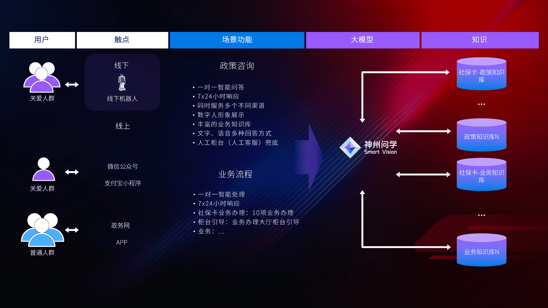 • 线上线下全覆盖:线上提供微信公众号、、、支付宝小程序、、政务网、、app多种渠道,,,,与线下机器人形成完整服务体系。。。